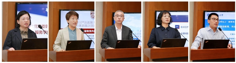 座谈会上,校党委常委、组织部部长夏江雯就强化党建引领,建设高素质干部队伍,服务学校事业高质量发展的基本情况进行了汇报,分析了存在的问题并提出工作思路和举措。纪委副书记、纪委办主任、监察处处长马玲,宣传部部长柴华分别就党风廉政建设和党内监督工作、意识形态工作情况作了交流汇报。化学学院党委书记张文清、生工学院教工第二党支部书记阳大海分别就学院党建工作开展成效、“双带头人”党支部建设情况进行了交流汇报。与会代表就加强党的领导和党的建设、促进党建工作与业务工作深度融合等进行了深入交流和讨论。